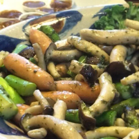 しめじに透明感が出て、アスパラガスがキレイな緑になったら